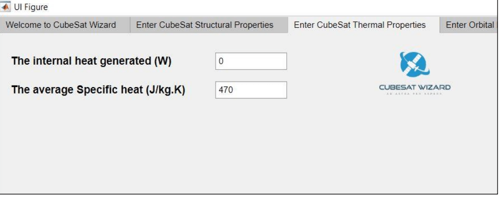 This Tab allows the user to enter Thermal parameters for the CubeSat. For this tutorial, we