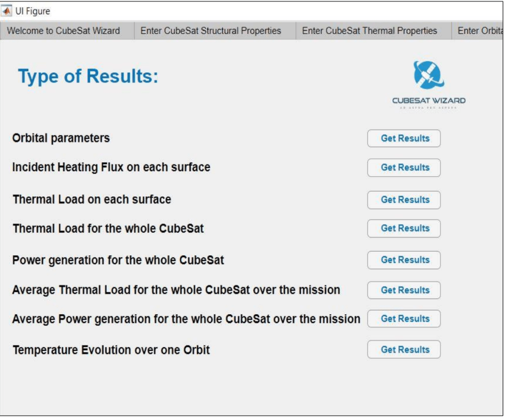 new window tab. The type of results generated (but not limited to) by the CubeSat Wizard