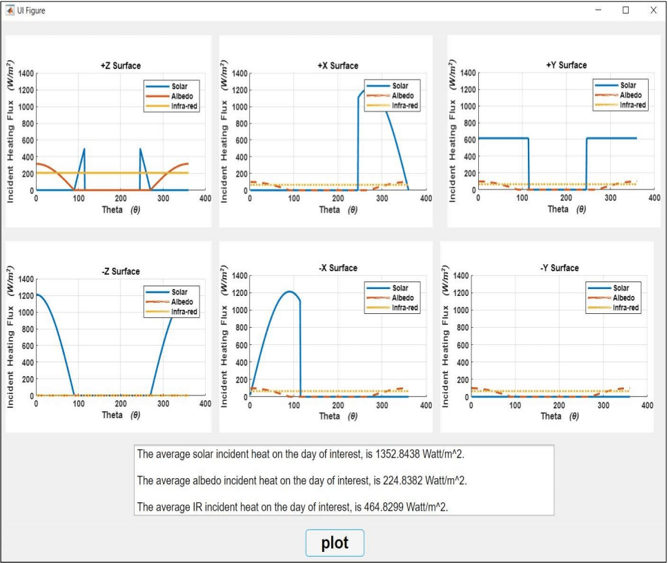 progression of solar, albedo and infra-red. Below the plots, a result window also illustrates
