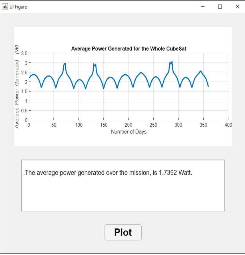 The result window calculates the Average power generated per day by the CubeSat during its