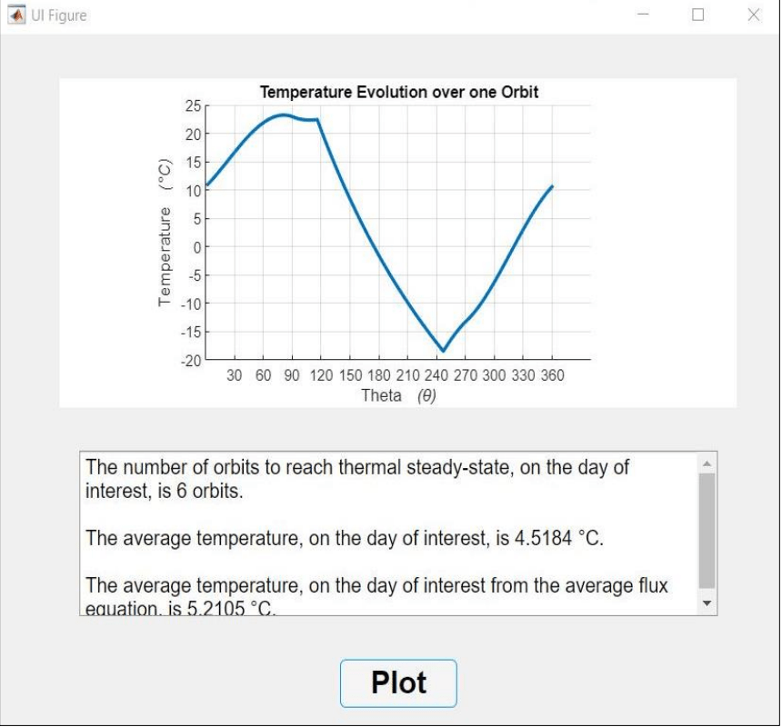 Temperature evolution over the orbits is also illustrated. The software also simulates Power